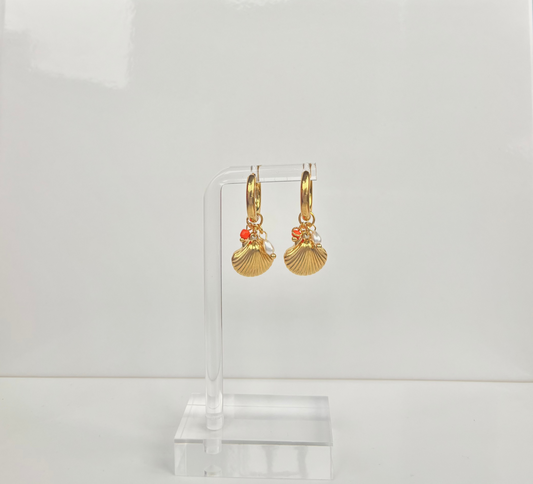 Golden Seashell Charm Hoops